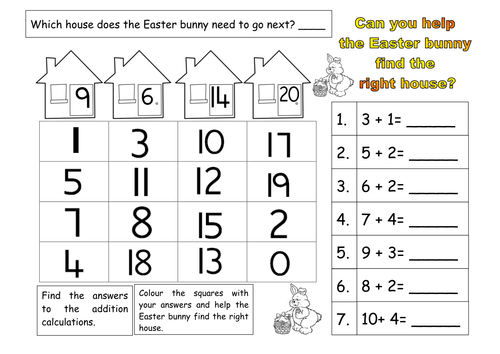 Easter Math Worksheets - Milestone Mom Easter Math Worksheets Leave a Comment / Uncategorized / By milestonemom You will have so much fun helping Mr. Bunny find the answers. In this math packet you will receive: - 1 Subtraction Worksheet - 1 Addition Worksheet - 1 Eye Spy Worksheet PURCHASE HERE! Easter Free Maths Worksheets - Easter Activities - Easter Free ... Here is what is included in these worksheets. Easter Bunny problem solving and colouring Counting (1-10) Easter Themed addition and subtraction Match the pair of similar eggs Missing Numbers (1-100) Easter egg decoration Spot the difference Easter Time (Hour, Half Hour, Quarter Hour) Easter Time - Draw the hands Ordering Easter Problem Solving FREE Printable Easter Color by Number Addition Math Worksheets These easter math worksheets are perfect for, preschool, pre-k, kindergarten, and first graders to work on visual discrimination and math skills as they color by code to bring these fun Easter themed objects to life. Simply print pdf file with easter math worksheets and you are ready for easter activities for kindergarten. Easter Bunny Worksheet - Twisty Noodle Worksheets; Math; Printable Books; Blog; Your Favorites; ... Worksheets > Holiday Worksheets > Easter Worksheets > Easter Bunny Worksheet. Print This Worksheet. Login to Add to Favorites. Print This Worksheet (it'll print full page) Save on Pinterest. Customize Your Worksheet. Change Style. Change the Font: Block; D'Nealian;